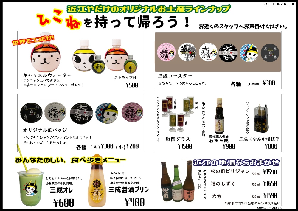 濃厚・当店で使用しているおススメの彦根で製造されている醤油。三成醬油プリンにもしようしている醤油です。お土産に是非。税込900円